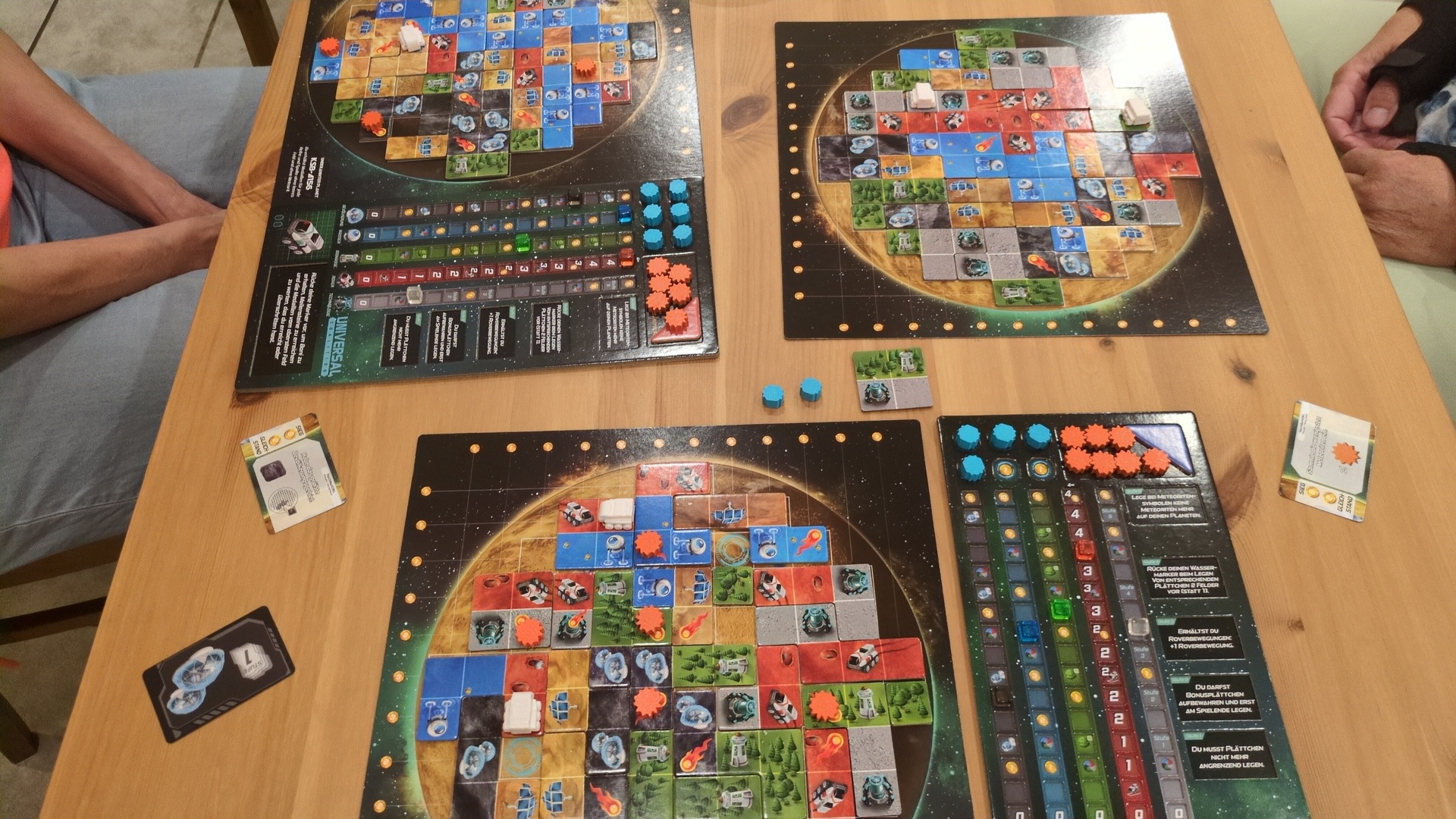 🪐 Planet Unknown: Wir besiedeln neue Planeten, setzen Modulplättchen clever ein und optimieren unsere Kolonie. Jede Runde bringt neue Herausforderungen, Ressourcen müssen geschickt verteilt werden, und wir überlegen genau, welche Gebäude und Landschaften uns die meisten Vorteile bringen. Das Spiel fühlt sich an wie eine Mischung aus Puzzle und Strategiespiel – fesselnd und abwechslungsreich.
