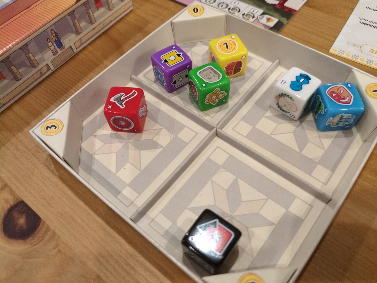Bei 7 Wonders Dice geht es ähnlich wie beim Klassiker 7 Wonders um die Erschaffung von Weltwundern – diesmal allerdings durch Würfeln statt Karten.