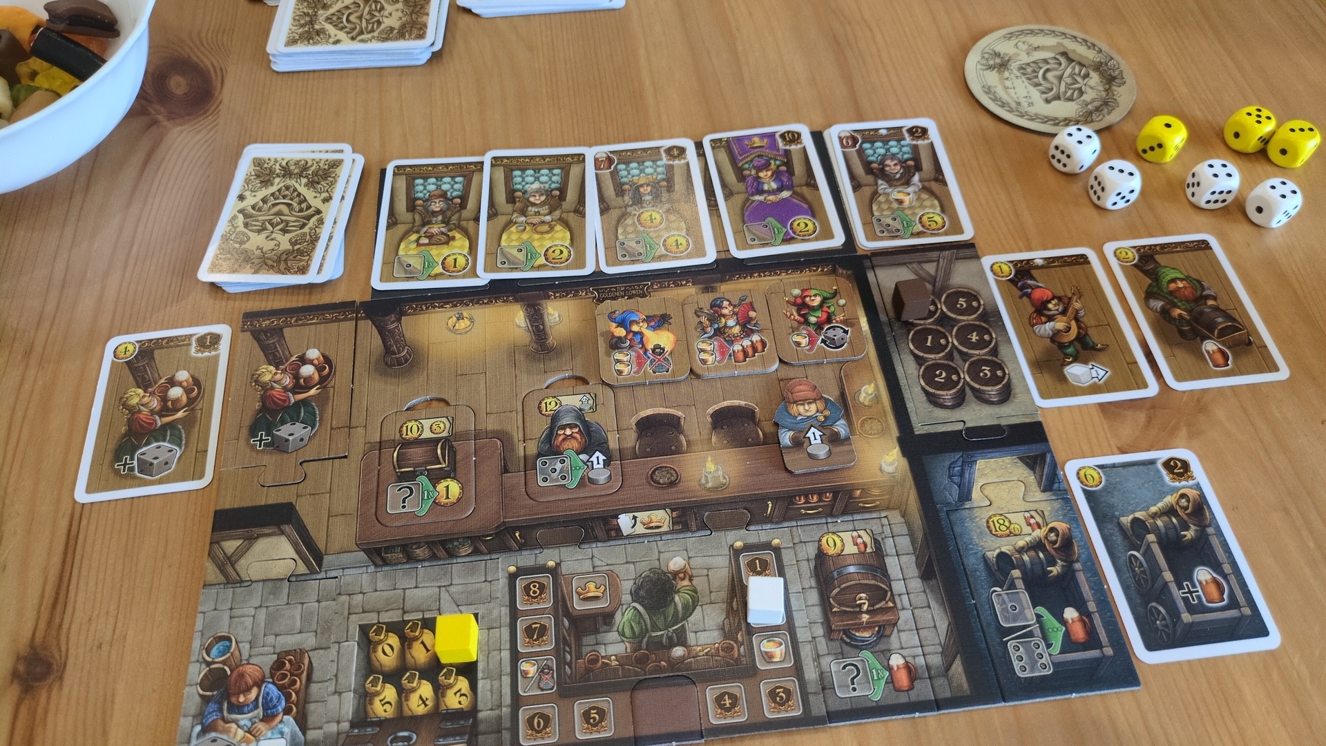 Die Tavernen im Tiefen Thal: Hier übernehmen wir die Rollen von Wirten und bauen unsere Tavernen aus, um zahlungskräftige Gäste anzulocken. Würfeln, Karten clever einsetzen und Entscheidungen abwägen – jede Runde bringt neue Herausforderungen. Das Spiel bietet viel Wiederspielreiz und wir tauchen gerne wieder in unsere Taverne ein.