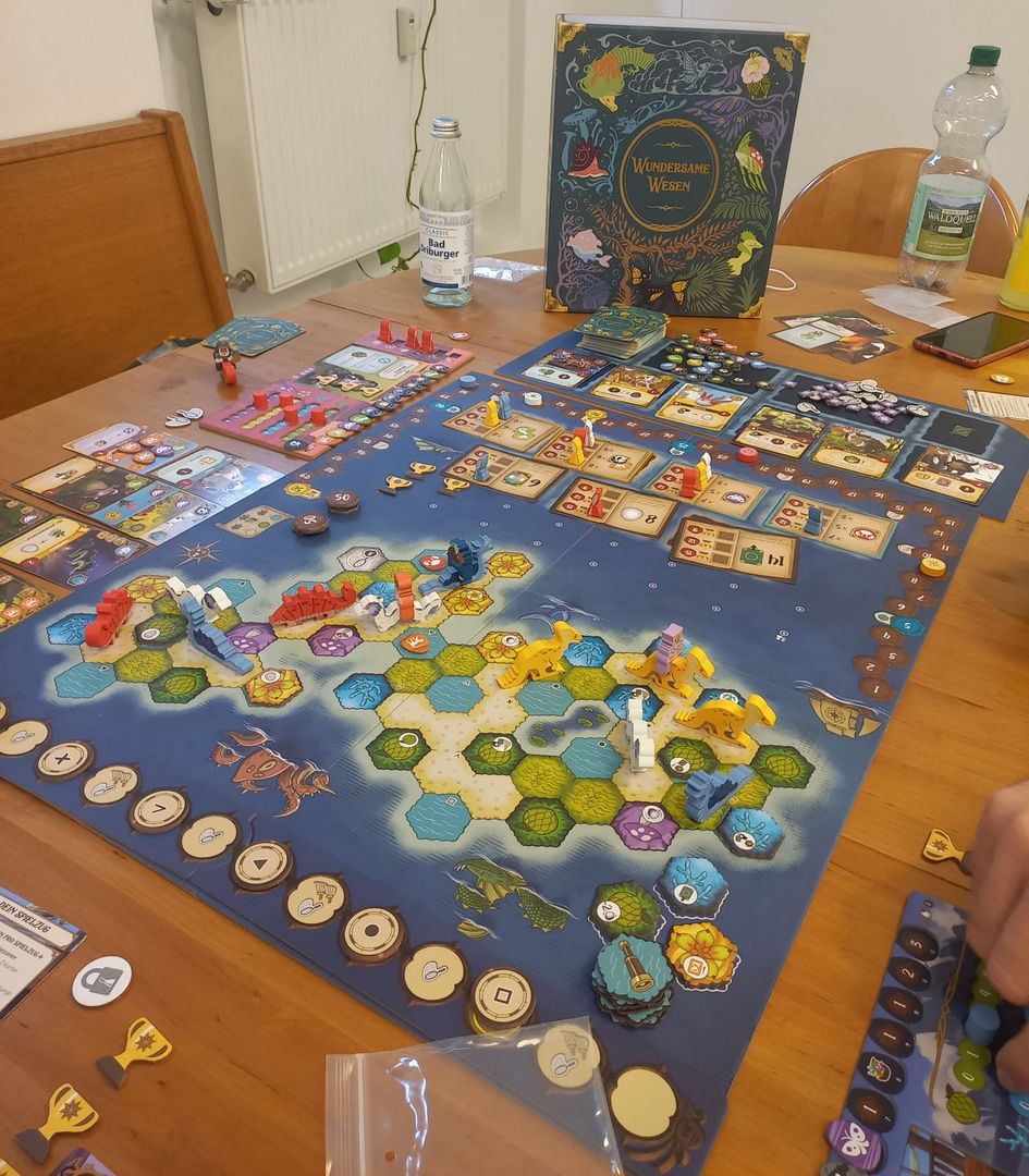 In Wundersame Wesen schlüpfen wir in die Rollen von Forschenden, die eine geheimnisvolle Insel voller fantastischer Kreaturen erkunden. Mit 126 einzigartigen Wesenskarten und einem cleveren Worker-Placement➚-Mechanismus bauen wir unsere Engines aus. Die asymmetrischen Kapitäne bringen immer wieder neue Herausforderungen und sorgen für spannende Entscheidungen. Ein optisch beeindruckendes Eurogame, das uns fesselt.